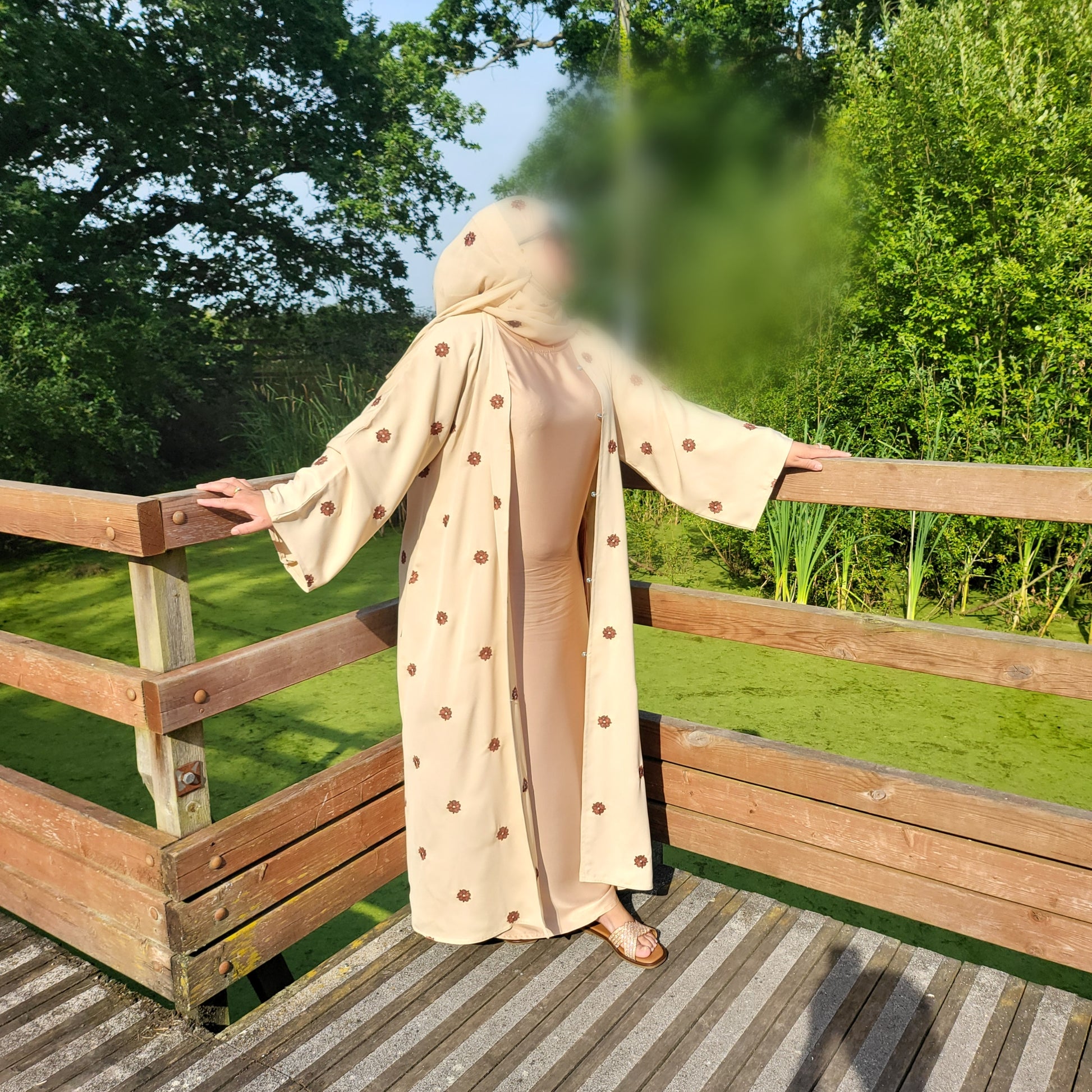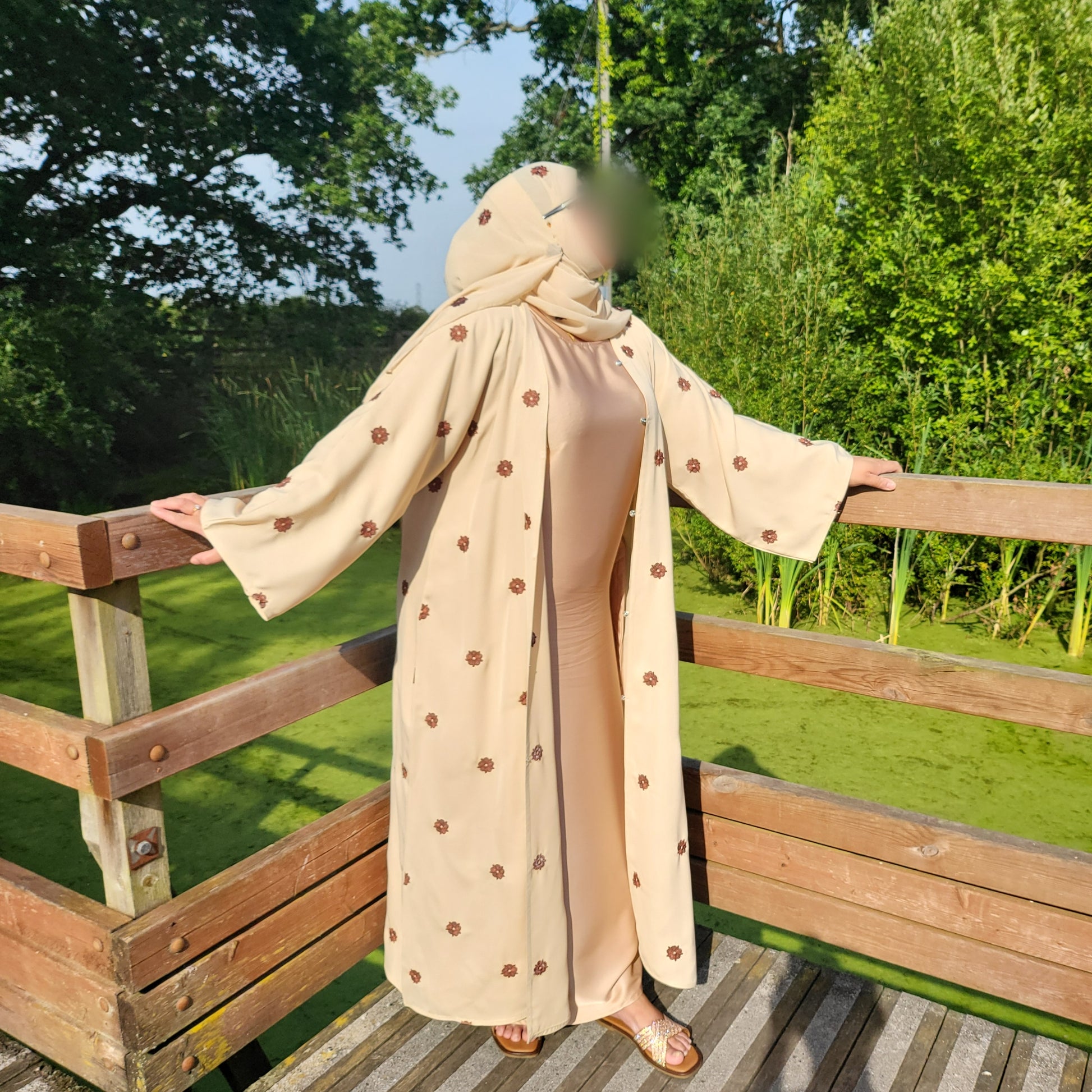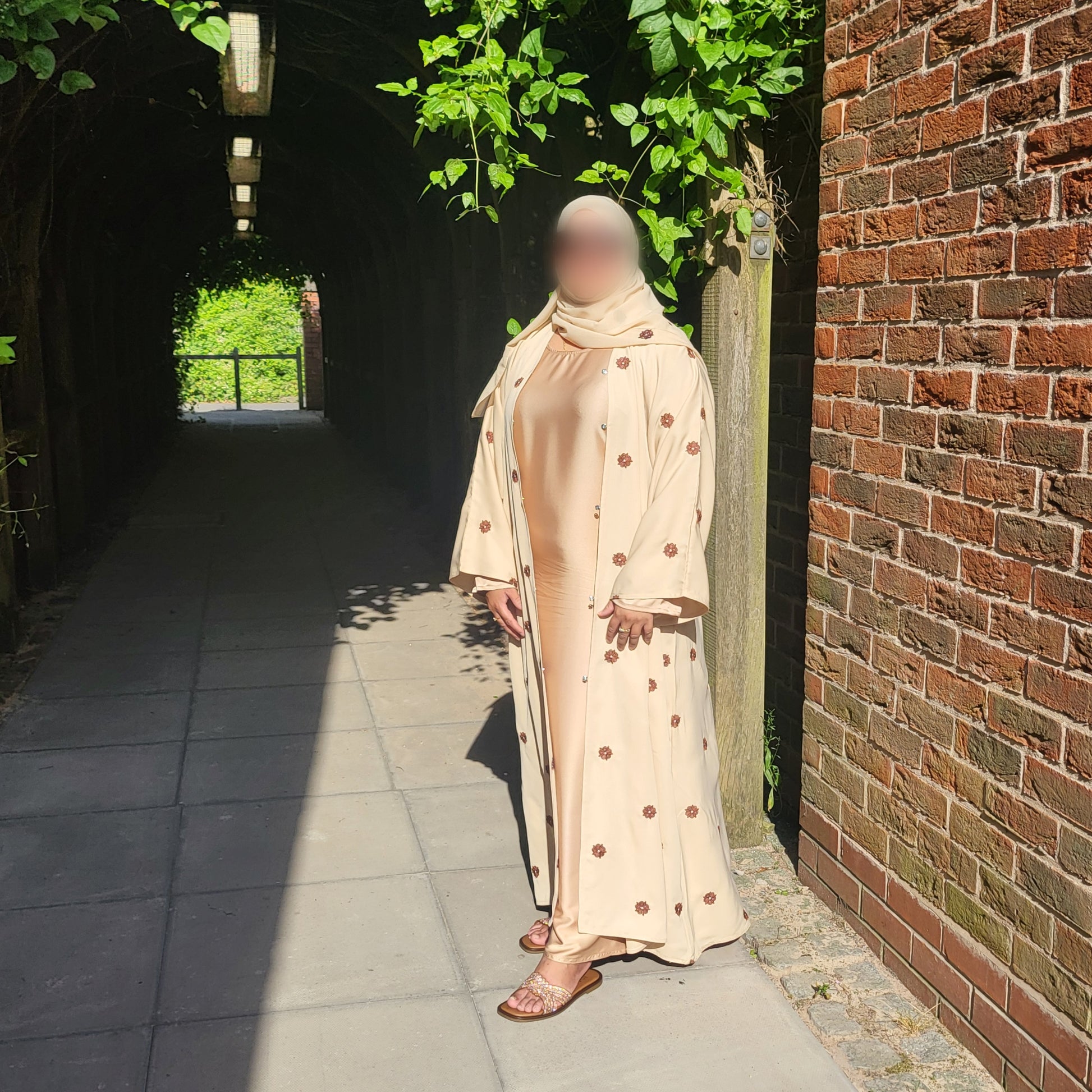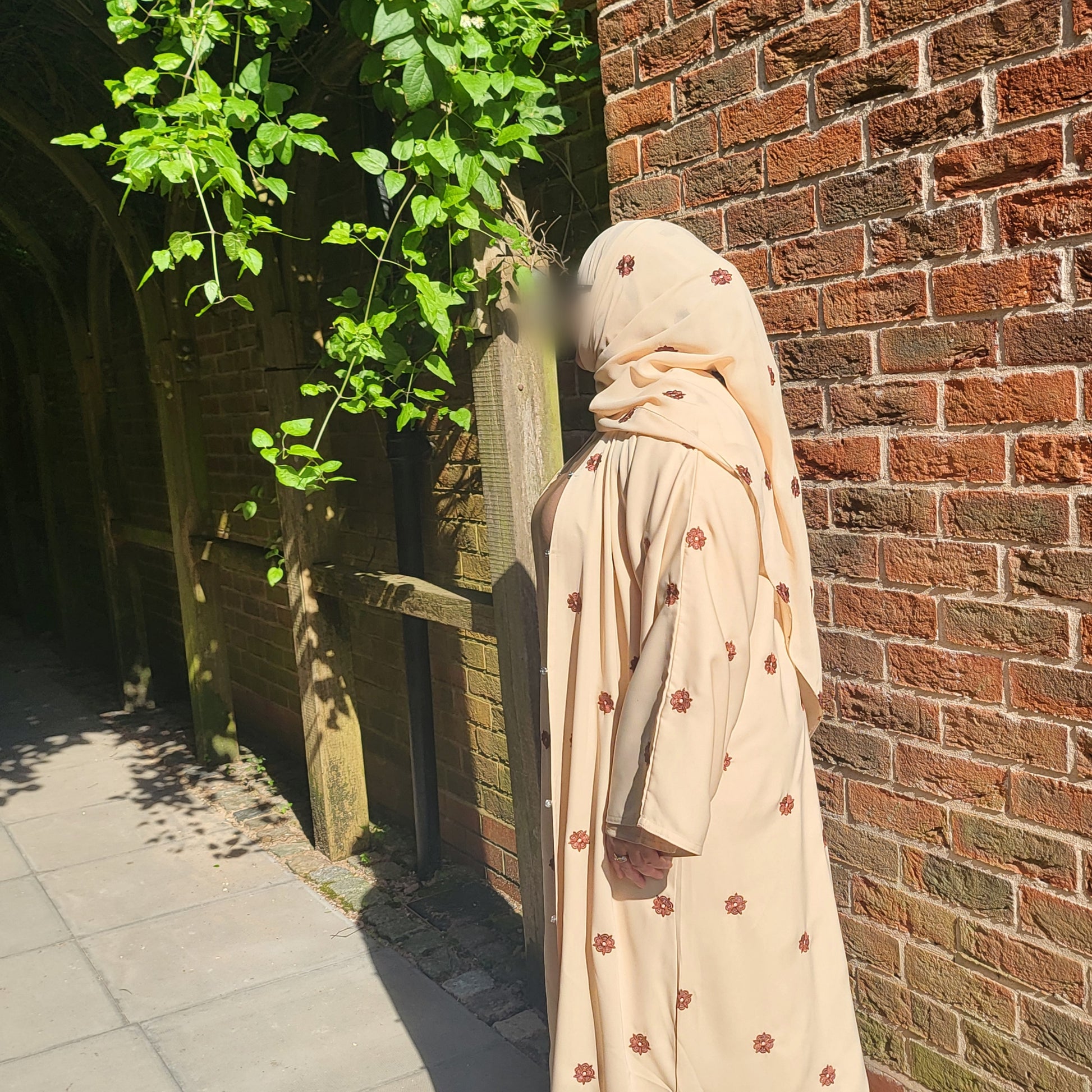 Al Shamas Abaya 》Sand Floral Embroidered Abaya with Matching Hijab