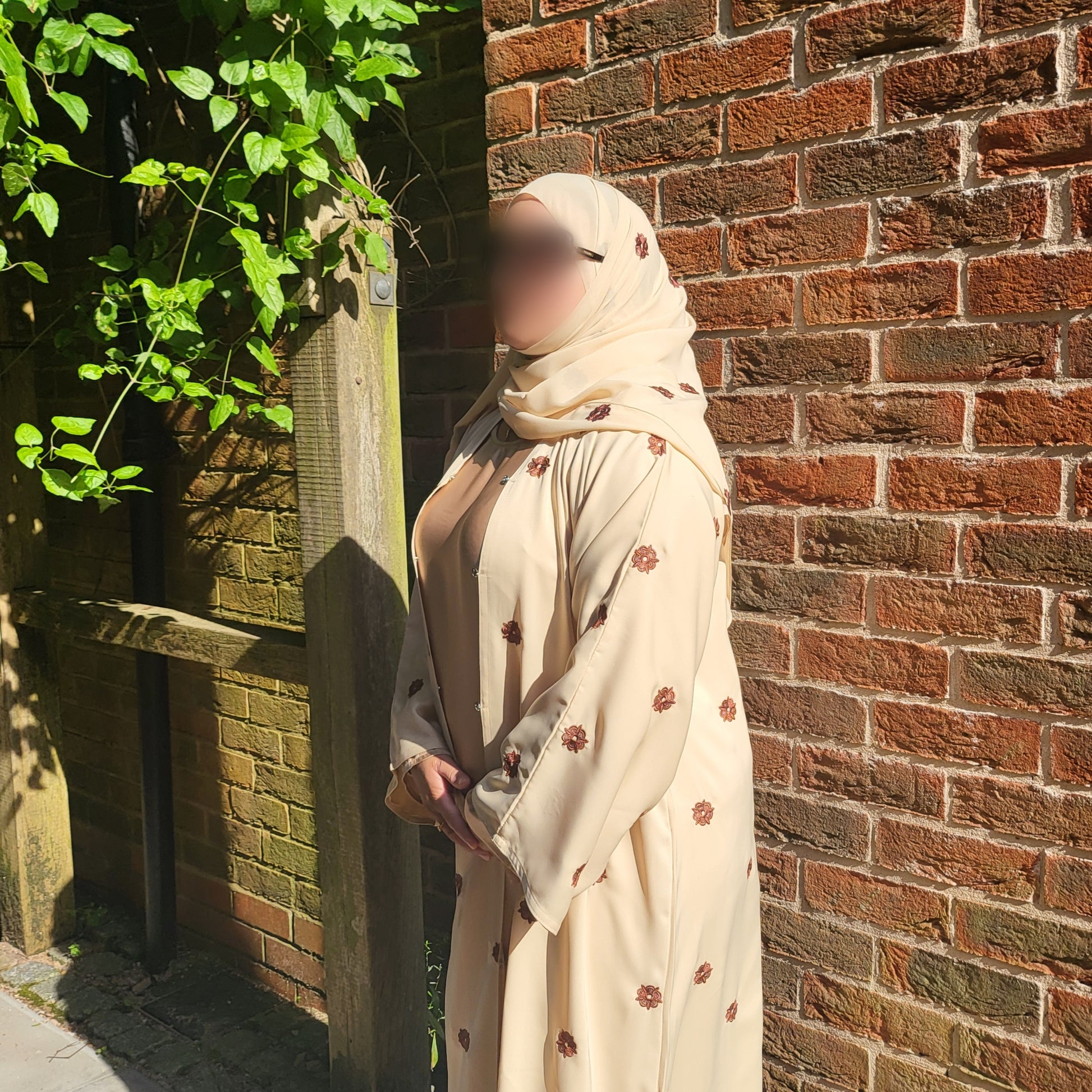 Crafted from soft, breathable fabric, it features intricately embroidered floral patterns that add a unique, feminine touch. The flowing silhouette is flattering for all body types, making it an essential piece for any modest wardrobe.