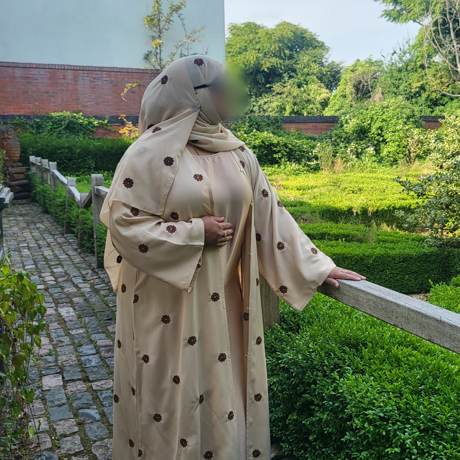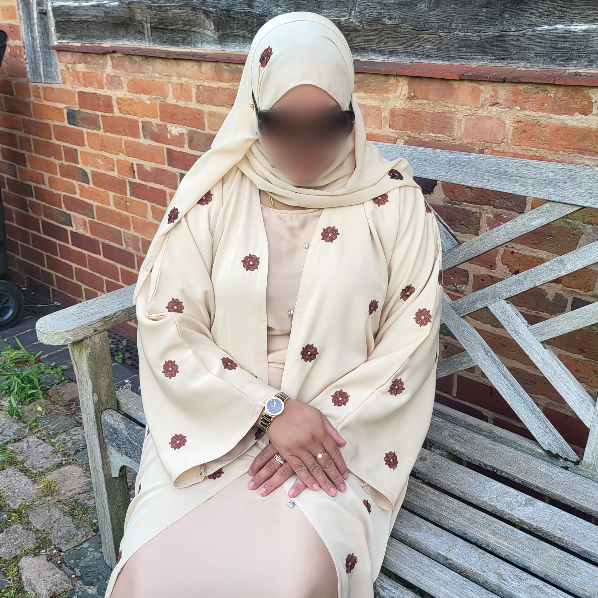 Al Shamas Abaya 》Sand Floral Embroidered Abaya with Matching Hijab